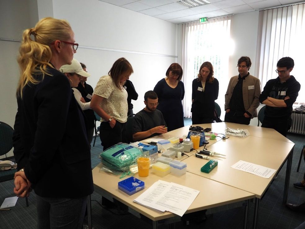 Zu Auflockerung und Anregung des Miteinanders hatte das Organisationsteam tagesübergreifend praktische und kompetitive Aufgaben vorbereitet. Kleingruppen gingen bereits am ersten Tag des Netzwerktreffens in den Wettbewerb der Wasseraufbereitung, da sauberes Wasser zu den Nachhaltigkeitszielen zählt. Verunreinigte Wasserproben konnten mit verschiedenen Methoden behandelt werden. In einem zweiten Schritt erfolgte die Erfolgskontrolle: das mit verschiedenen Methoden aufbereitete Wasser wurde auf Agarplatten ausgebracht, inkubiert und nach 24 Stunden abgelesen. Die Herstellung bakterienfreien Wassers versprach Wettbewerbspunkte.